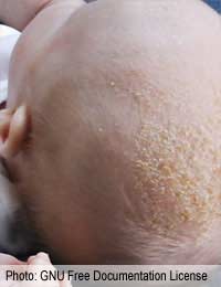 Cradle cap, otherwise known as seborrheic dermatitis, is a very common infant condition that may begin shortly after birth and last for a few weeks or up until the child is two years of age, sometimes a little longer.It can vary in severity from a few patches of flaky skin to being quite nasty looking with thick yellow crusts covering the scalp. They often take on a scab-like appearance and can become raised away from the scalp.For most babies there is no discomfort or accompanying pain, unless it is incorrectly treated and an infection arises.There is a small possibility that the cradle cap can spread to other parts of the body such as the eyebrows or in areas where the skin is creased, this may lead to a fungal infection and children with cradle cap should be closely observed for any spread.Experts also believe that those who had cradle cap as a young baby may be more susceptible to developing eczema in later life, but this may not be serious and may be easily treatable.